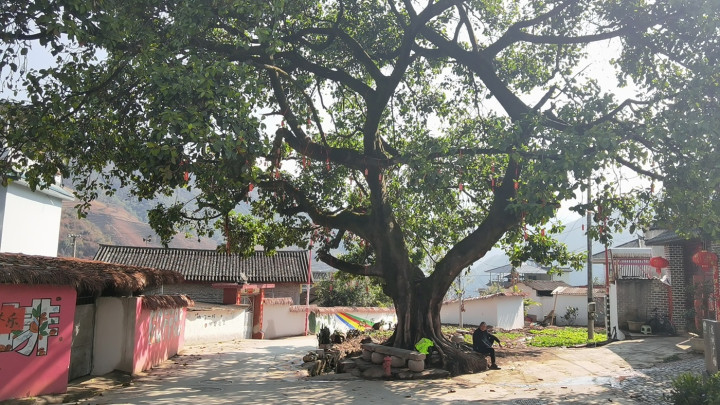 新春时节,群山怀抱的泸水市上江镇付坝村古龙坝村民小组美景如画:土地平旷,屋舍俨然,良田美池间,鸡鸭嬉戏,原野绿意悠悠,犹如陶渊明笔下的世外桃源。